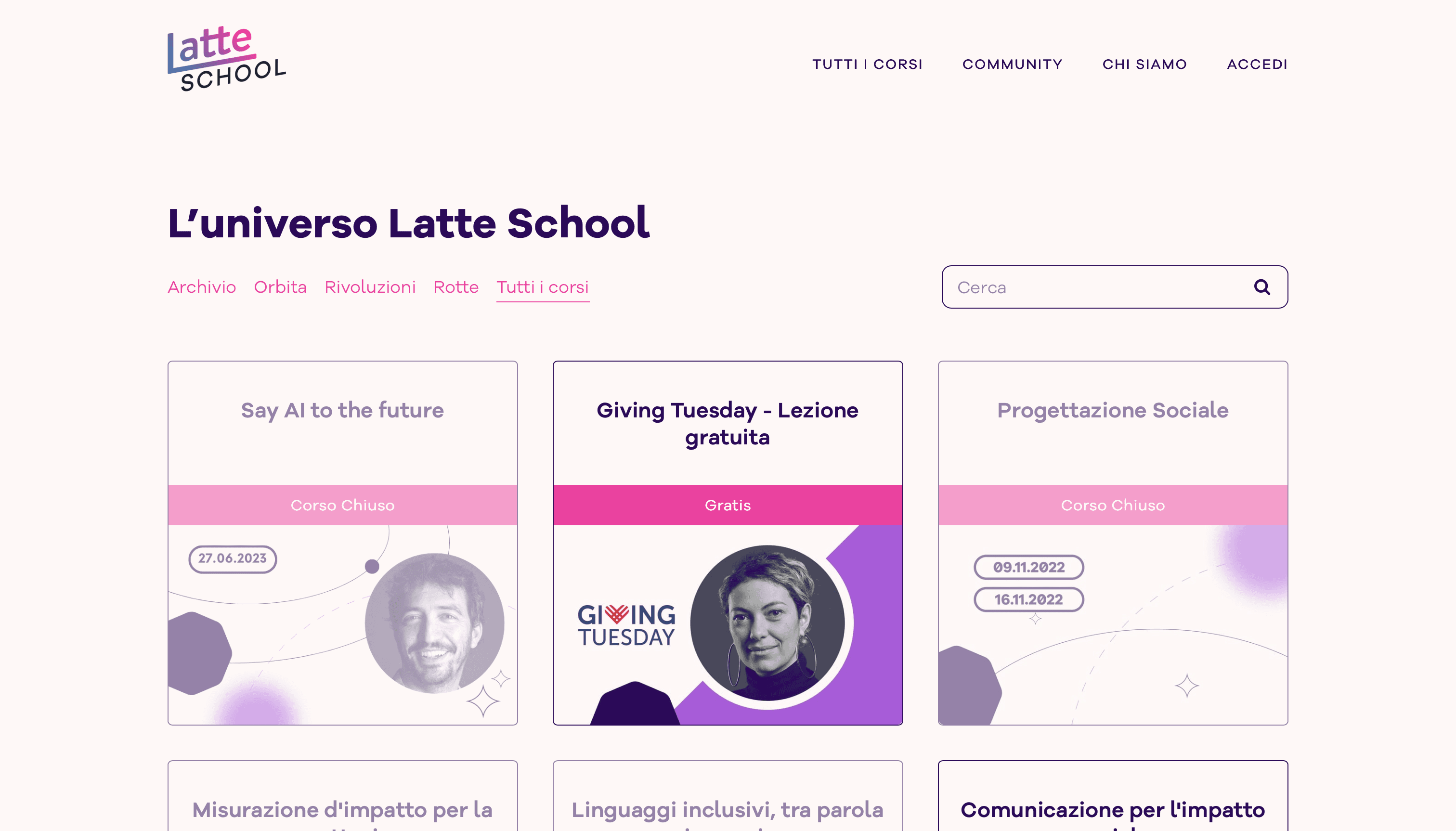 ONOFF designed and developed Latte School, an online school dedicated to offering training, courses, and learning opportunities for good causes. The goal was to create a clear and recognizable identity that could effectively communicate the school’s values and mission.